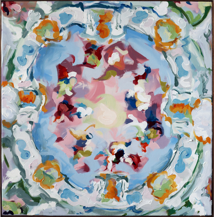 These works take European signifiers of status and authority as their subject matter; frescos, ceilings and Baroque/Rococo architectural spaces. This era is often portrayed as decadent and indulgent, but its exuberance and its opposition to strict Classical rules is enormously appealing. The works are intended to capture this dichotomy.