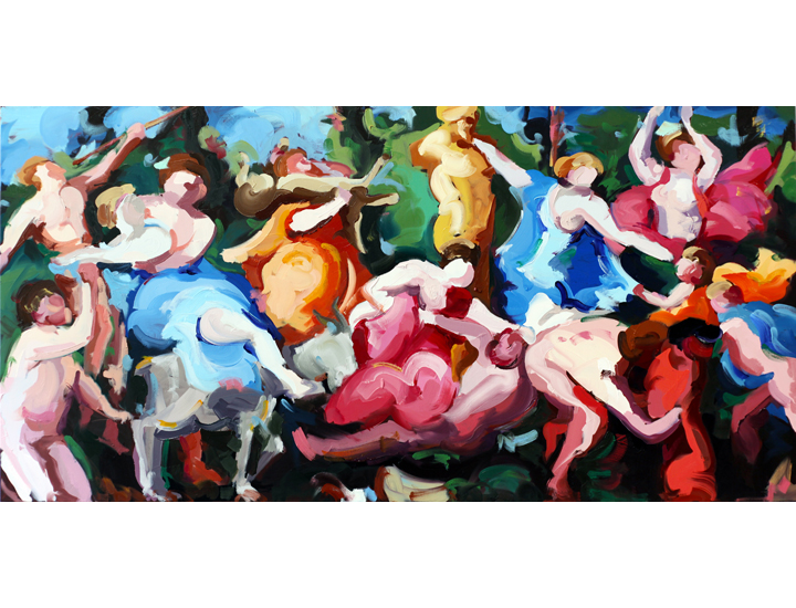 These works take European signifiers of status and authority as their subject matter; frescos, ceilings and Baroque/Rococo architectural spaces. This era is often portrayed as decadent and indulgent, but its exuberance and its opposition to strict Classical rules is enormously appealing. The works are intended to capture this dichotomy.
